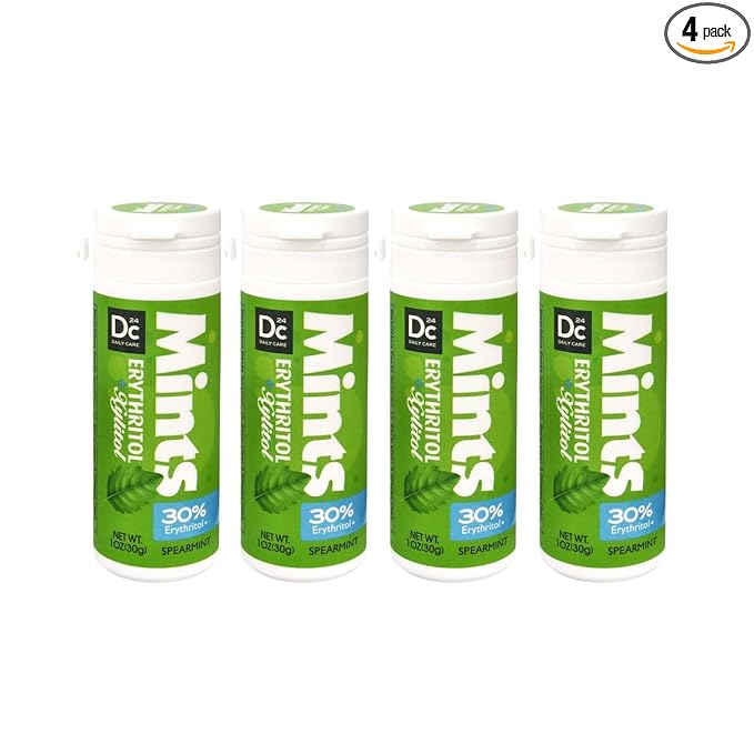 DC24 DAILY CARE Xylitol Erythritol Mints, No Aspartame Sugar Free Mints, Low-Calorie, Refresh Breath, Keto Spearmint 30 Pieces (Pack of 4)