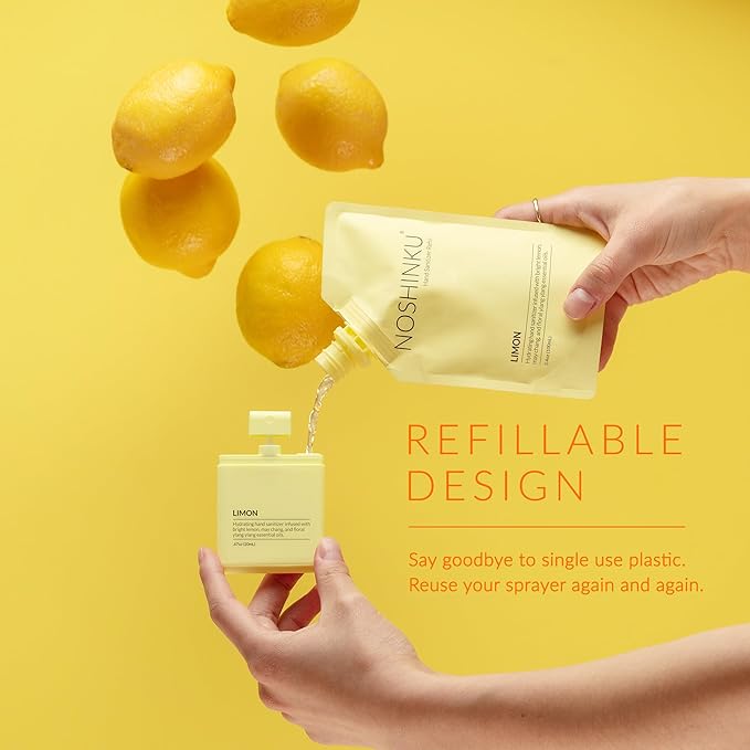 - REFILLABLE POCKET SPRAYERS: Includes 6 refillable pocket hand sanitizer sprayers in Bergamot, Eucalyptus, Lavender, Orange Coriander, Vetiver and Limon Each premium soft-touch travel hand sanitizer delivers 300+ sprays and helps reduce plastic waste with our eco-conscious refill system.