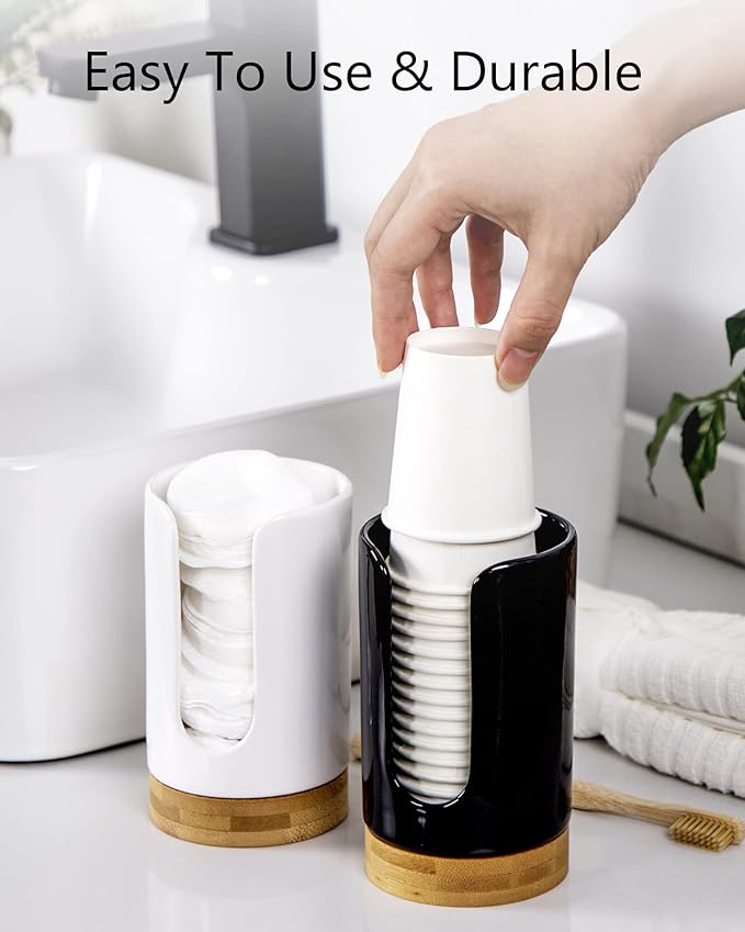 Ceramic Bathroom Cups Dispenser - 3-5 oz Disposable Paper & Plastic Bathroom Cups Holder - Mouthwash Cups Dispenser for Bathroom, Guest Toiletries, Countertop, Coffee - BPA Free (Black)