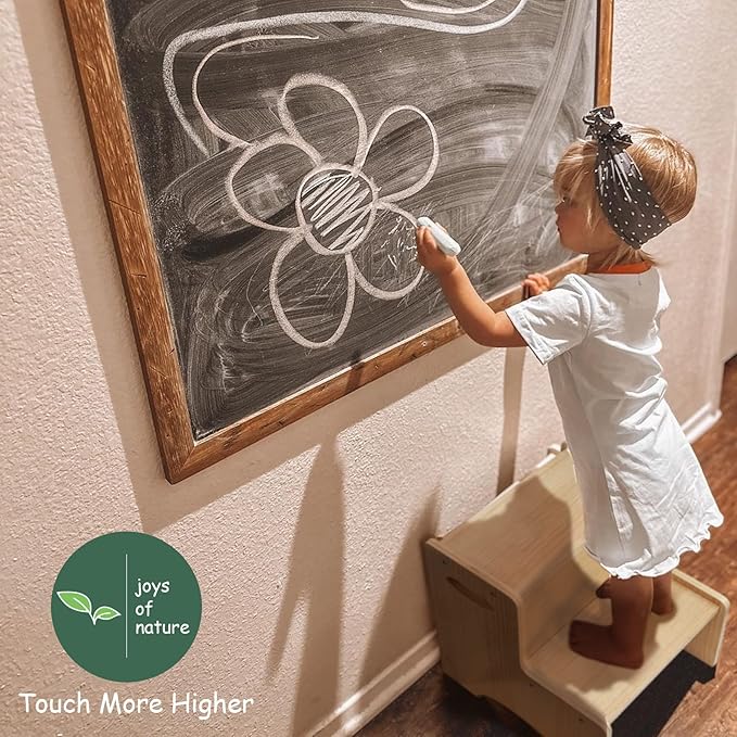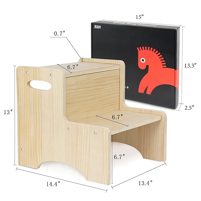 - PERFECT FOR GROWING KIDS: Wooden two step stool brings kids two steps closer to independence. Our dual height design with wide steps help toddlers step their way up to independence as they transition from toilet potty training to washing hands and brushing teeth at the sink, to finally reaching countertops and cabinets in your bathroom and kitchen.