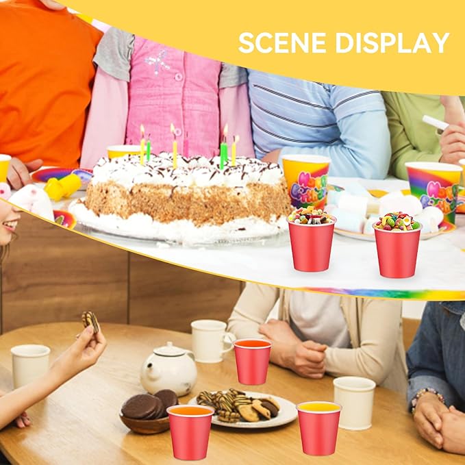 - 150 Pieces in Total:Red little paper cups can hold 3 oz. They're available in convenient packs of 150, a large number is more affordable and beautiful.3oz small Red paper cups are perfect for bathroom cup,supermarket trial cup,snack cup for birthday party and so on.