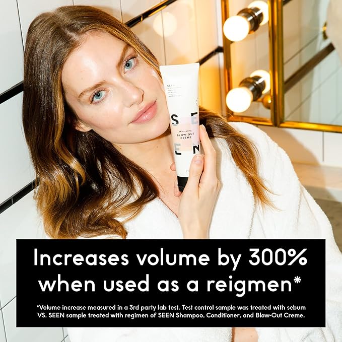 - TSA-approved mini-sizes of SEEN’s fragrance-free Shampoo, Conditioner, and Blow-Out Creme for stronger, smoother, healthier hair