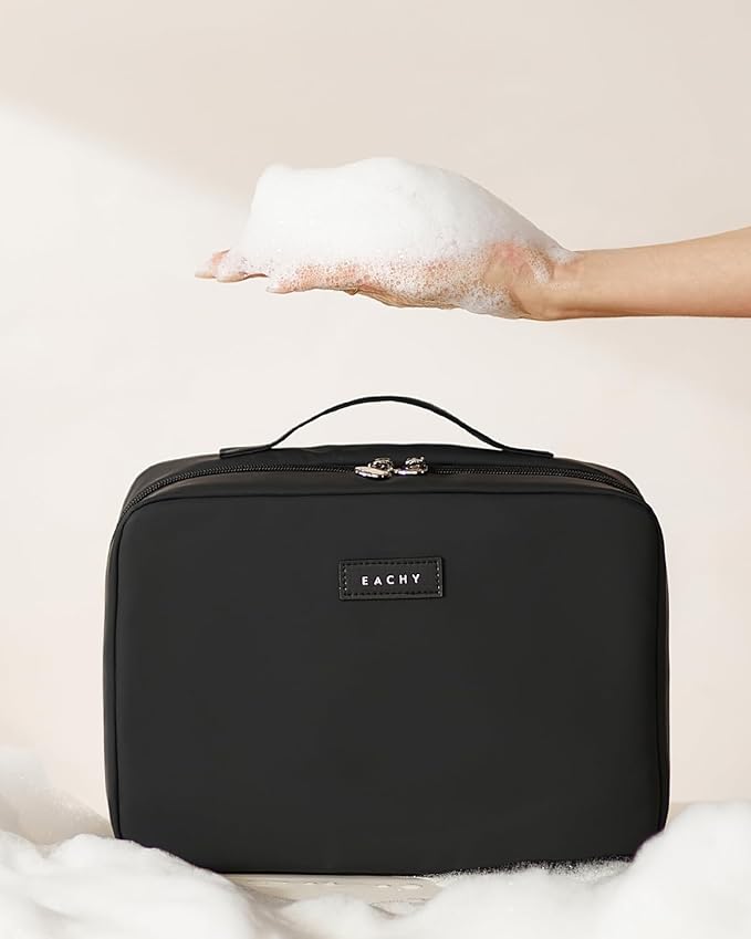 EACHY Travel Toiletry Bag with Hanging Hook, Portable Makeup Cosmetic Bags for Women, Water-Resistant Full-Size Travel Accessories (Black)