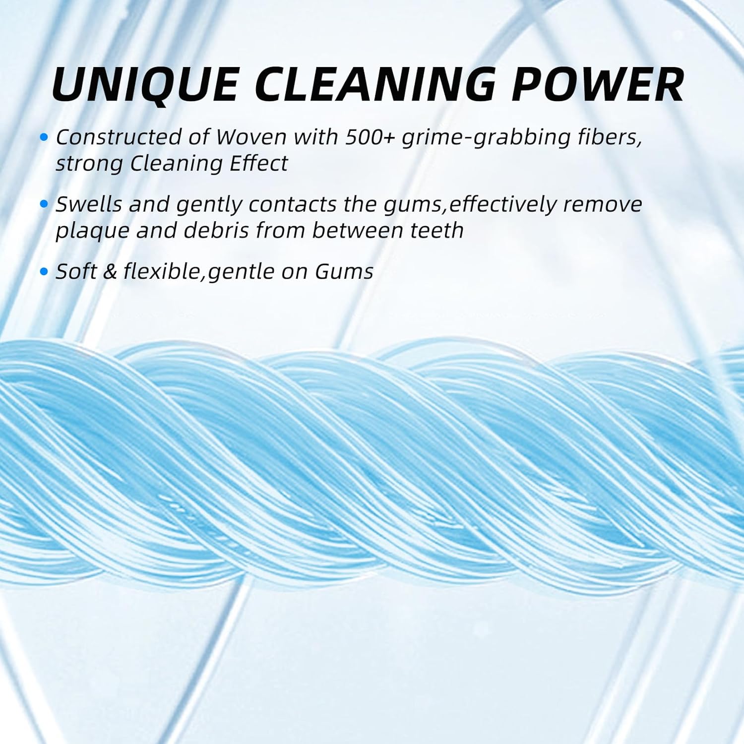 - EXTRA-WIDE CLEANSING SURFACE,GENTLE ON GUMS: Expanding dental floss is wider than traditional floss,ultra-soft fibers are woven tightly under high manufacturing standards to minimize stretching or splitting and be gentle on gums, making our floss ideal for people with dental implants, crowns, inflamed gums, or dental sensitivity.Additionally, it is shred-resistant, so it won't break or fray during use.
