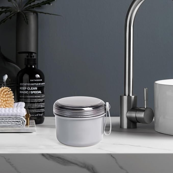 - ✔ 100% LEAK-PROOF: The denture case features a threaded design with a silicone seal ring that ensures leakproof protection, whether it's standing upright or lying on its side, even during flights or when traveling through mountainous areas under pressure. You don't have to worry about water leakage causing a mess. It is the market's best-performing denture bath case in terms of leak prevention. Whether you're at home or on a business trip, it is ideal for soaking and cleaning all day long.