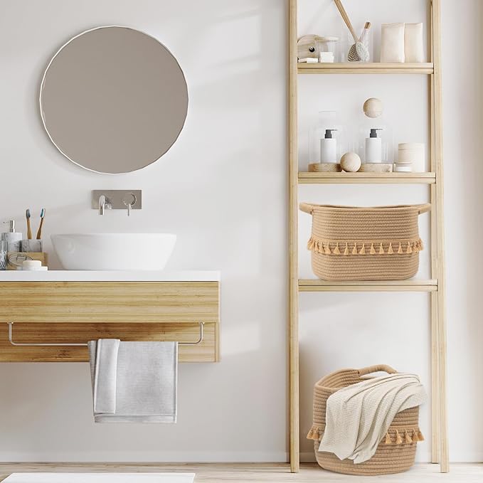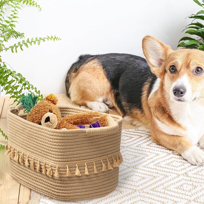 - ✨Chic and Practical Storage: Our storage baskets are both stylish and functional, allowing you to organize your home with ease and elegance. Made from pure cotton, our woven storage basket are soft, flexible, and durable, with a unique tassel design that sets them apart from the rest. It's not just a storage basket, it's a decorative basket for your home. Use them in any room of your home to store blankets, toys, magazines, and more. The pet toys and small snacks also have their own place to go.