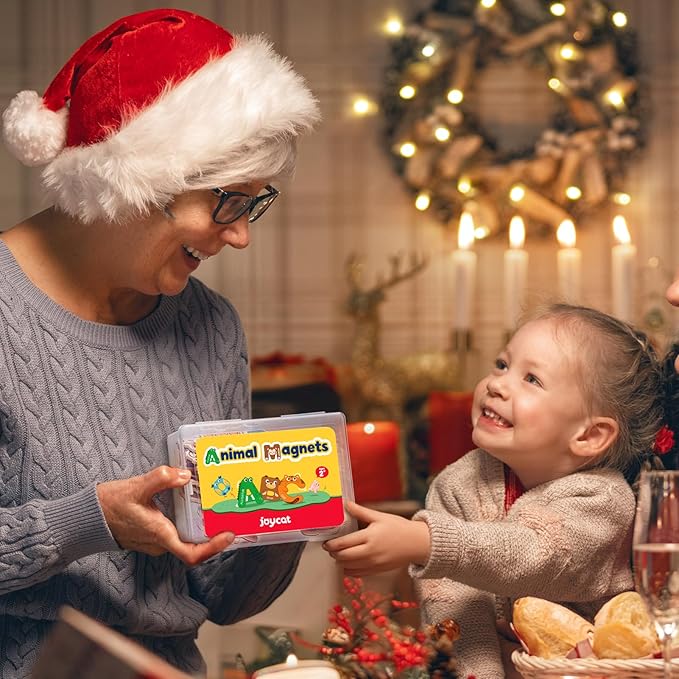 - What's in it: JoyCat fridge magnets for kids provide 26-piece magnetic uppercase letters with cute animal designs, all packed in a storage box that helps you take anywhere. It not only attracts children's attention through its cute appearance, but also helps toddlers recognize animals, letters, numbers, and learn in joy