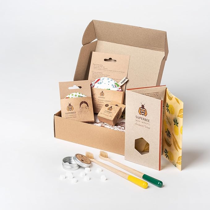 - SUSTAINABLE GIFTBOX - Superbee women gift box kit is a nice gift for a natural, vegan and plastic free approach to your beauty routine. Also perfect as a housewarming gift basket or as a Christmas or mother’s day gift. With every gift box you will receive a greetings card.