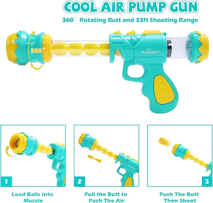 - Safe Kids Toy: Your child's safety is our top priority: The air pump guns are made from eco-friendly ABS materials, and the all-round design ensures a secure shooting experience. The lightweight and harmless EVA foam balls collect inside the dinosaur's belly, making recycling a breeze and causing no harm to anyone or anything.