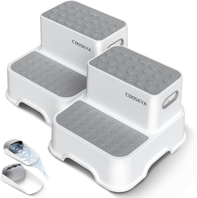 COOSEYA 2 Step Stools for Kids,Toddler Step Stool for Bathroom Sink,No-Slip Double up Stepping for Toddlers Bathroom, Multifunctional Toilet Potty Stool for Kids,Toilet Potty Training(2 Packs)
