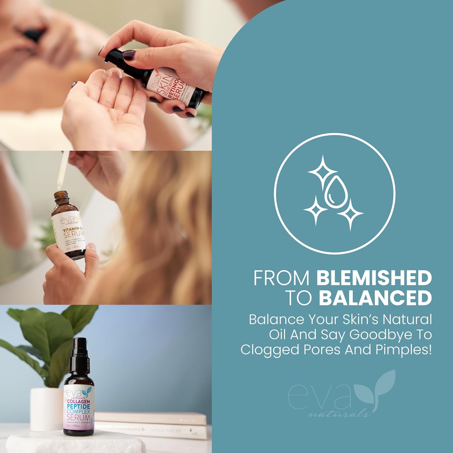 - CLEAN, SKIN-LOVING INGREDIENTS - SAFE, NATURAL, EFFECTIVE: Eva Naturals blends clean beauty values with science-backed actives and gentle plant-based ingredients like Tea Tree, Green Tea, Witch Hazel, and Aloe Vera. Free from harsh chemicals, this skincare bundle supports a healthier-looking complexion without unnecessary fillers or irritants. Perfect for women seeking high-performance face serums that prioritize safety, quality, and visible results.