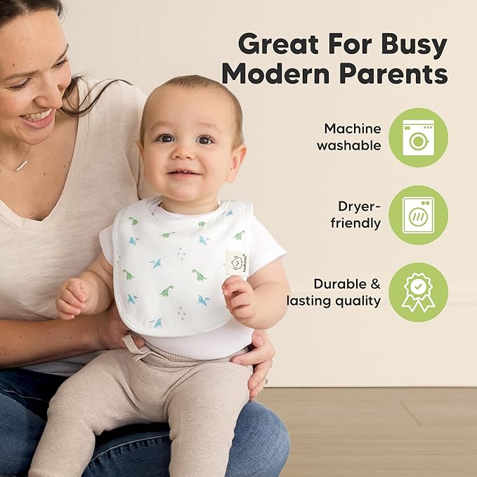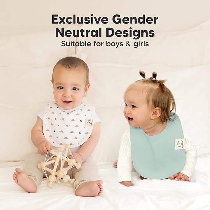 - Super Absorbent - Our organic baby boy and girl bibs are made with 100% organic cotton (GOTS-certified) and backed with water resistant fleece for added absorption. This dual layer design helps to keep your baby clean and fresh all day long. Suitable for newborns, infants, toddlers, heavy droolers and teething babies.