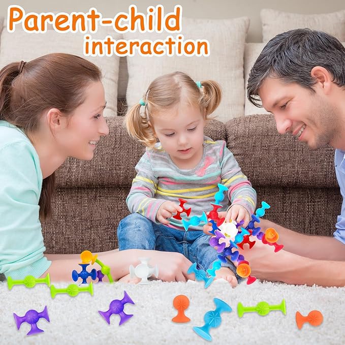 - πγ Suction Cup Toys for Baby γ48PCS building stacking sucker toy set is great enlightenment toy for kids. It can be transformed into various shapes such as numbers, geometric figures & objects, to help children learn numbers and recognize shapes. NOT FOR TEETHING!!