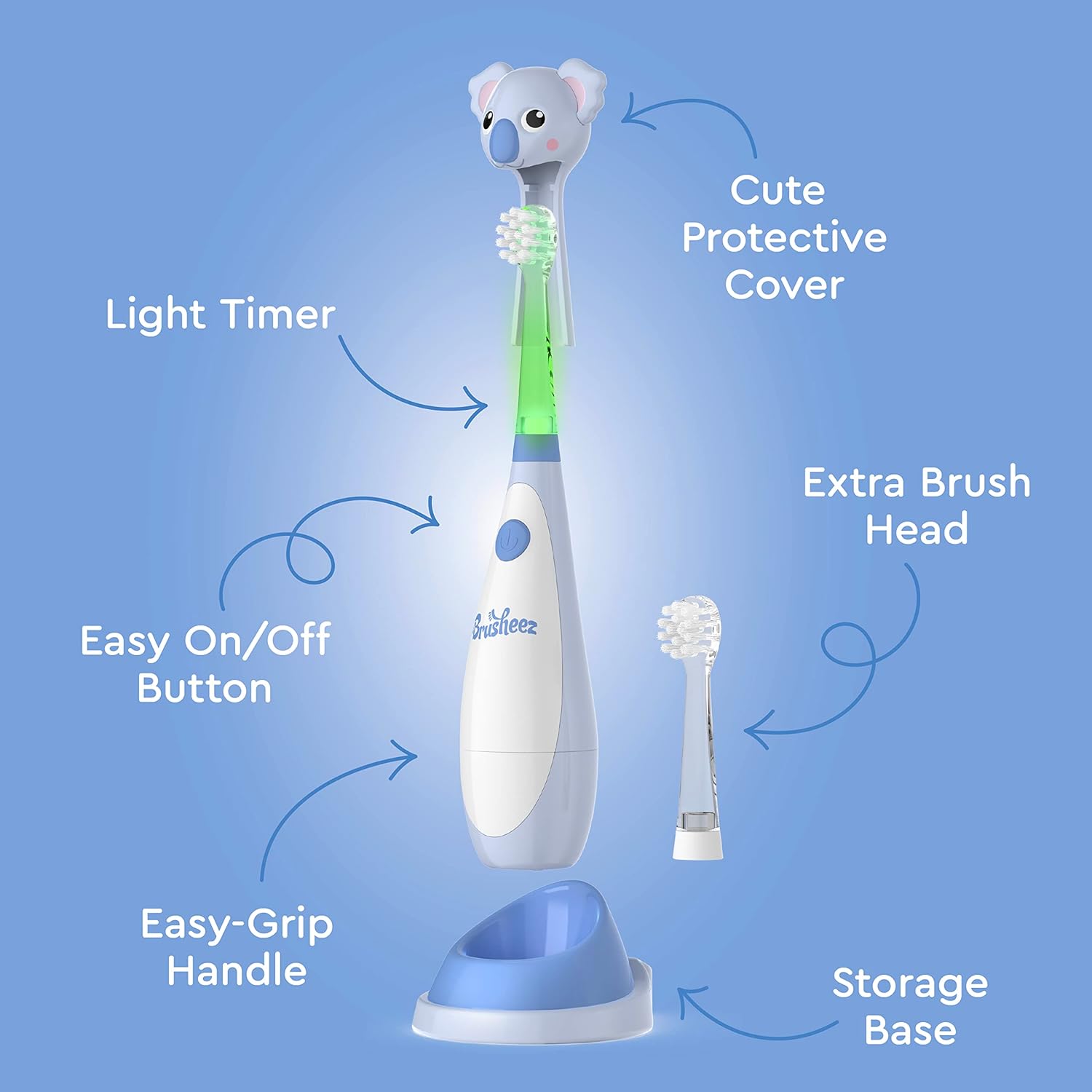 Brusheez Little Toddlers’ Sonic Toothbrush - Safe & Gentle Toothbrush for Ages 1-3 with Built-in, Light-Up 2-Minute Timer, Extra Brush Head, & Storage Base for First-Time Brushers (Kiwi The Koala)