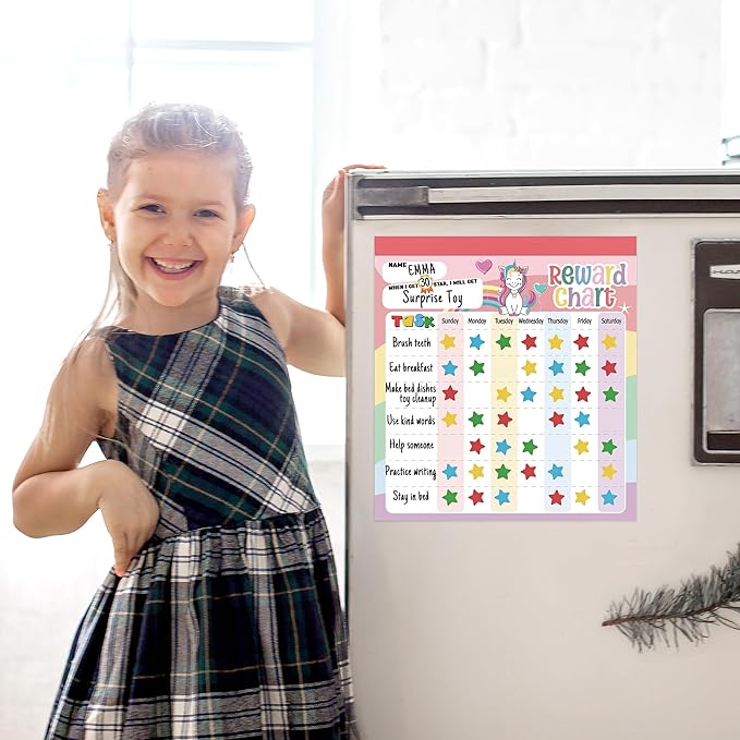 - Sturdy Magnet: Yasest unicorn magnetic chore chart for kids features a thick and sturdy magnet backing. Simply place it on any magnet-friendly metal surface, such as refrigerator or appliance, and it will stay securely fixed