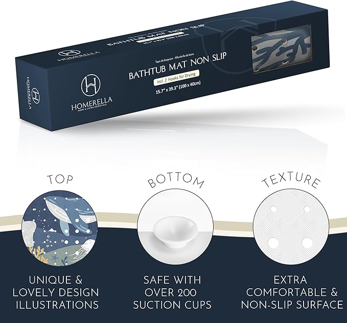 - NO MORE SLIPPING! The Homerella anti slip bath mats for tub kids provide a secure grip, even when using shampoo & soap. Enhance your bathing experience with these bath mats for bathroom non slip tub today!