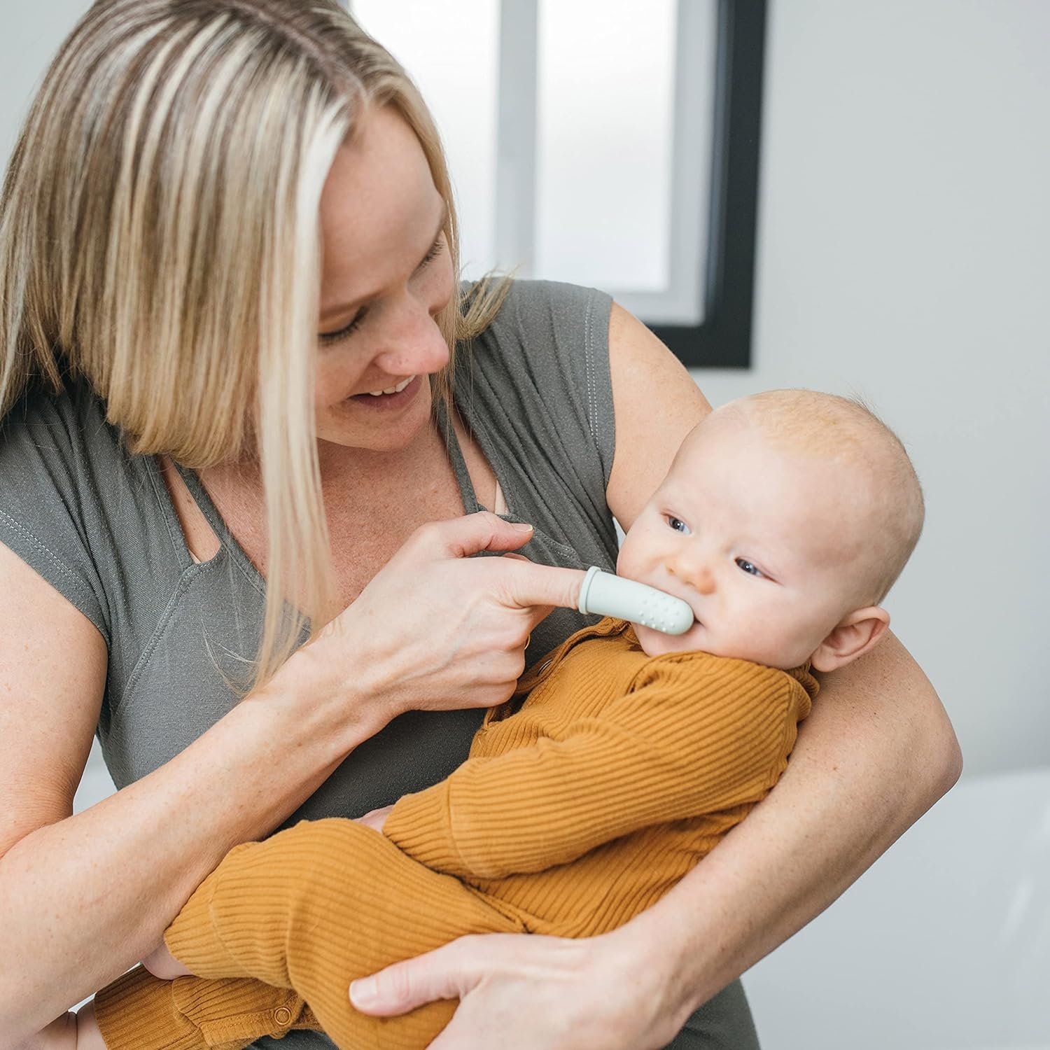 - BABY’S FIRST TOOTHBRUSH. Teach baby healthy oral hygiene habits with the super-soft 100% silicone finger toothbrush that’s gentle on sensitive mouths.