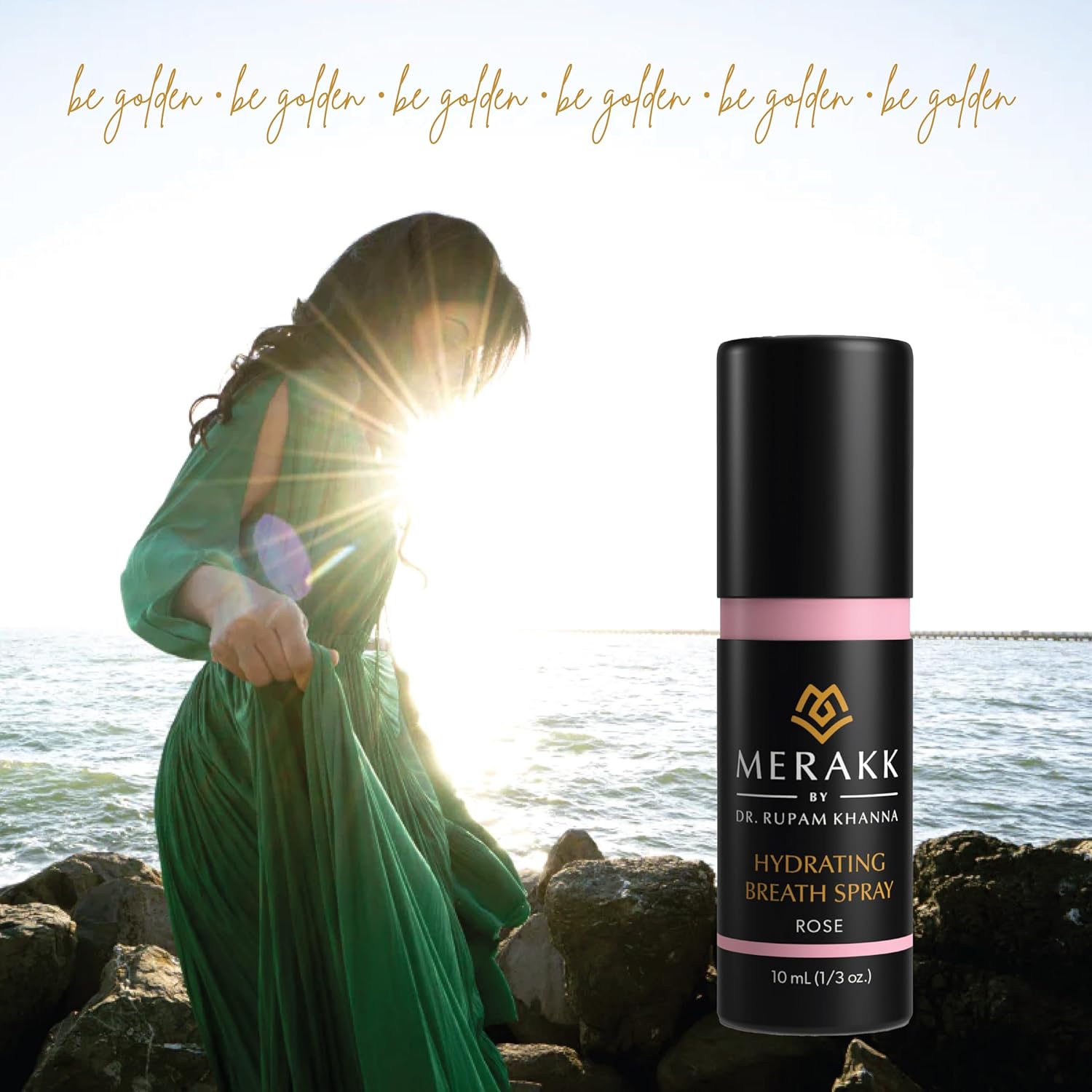 Merakk Hydrating Fresh Breath Spray in Rose - Sugar-Free Breath Freshener Spray & Dry Mouth Spray - Bad Breath Spray with Stevioside, Menthol & Glycerin - Dentist-Designed Oral Spray - 0.3 fl oz