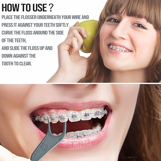 Dr. Emma Orthodontic Flossers for Braces, Ortho Dental Floss Picks, Mint Flavor 60 Count/Bag (Gray, 2pack)