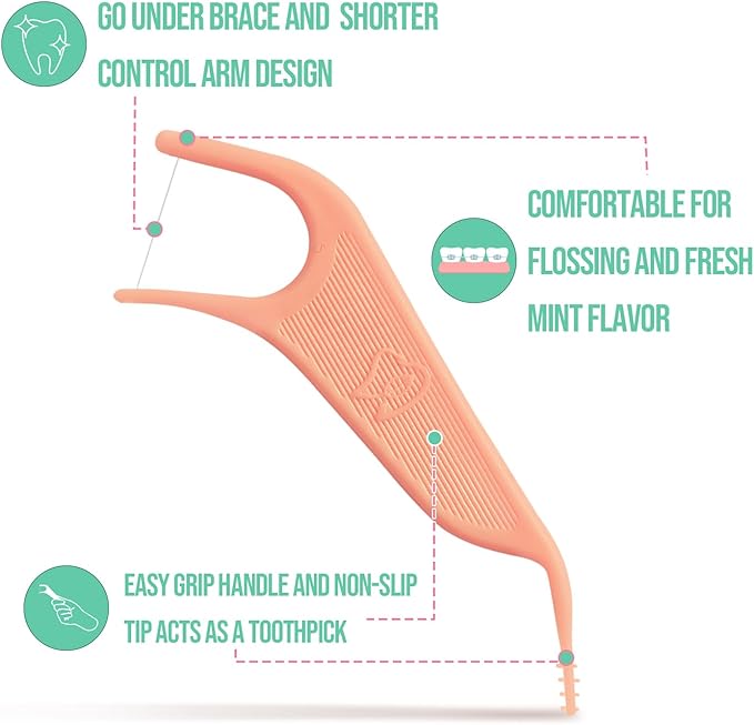 Dr. Emma Orthodontic Flossers for Braces, Ortho Dental Floss Picks, Mint Flavor 60 Count/Bag (Pink, 2pack)