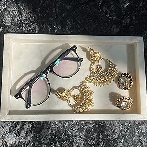- Compact & Functional Size – 12” x 8” Inches (30cm x 20cm). Weight - 2200 grams Offers ample space for daily essentials without overcrowding your surface. Easily holds phones, sunglasses, jewelry, makeup, keys, or hand towels.