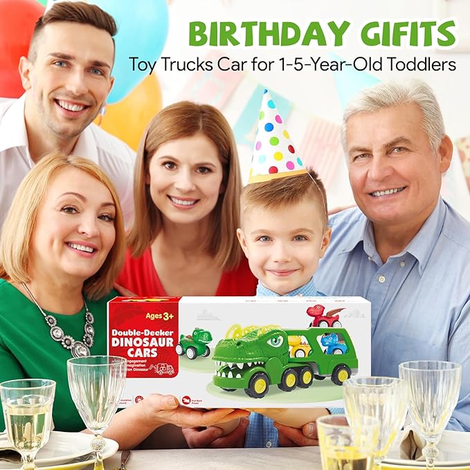 - Birthday Gifts for Boys: These dino toys truck is perfect toys for 2 year old boys and girls aged 3-7 who love trucks, toy cars, animals, and dinosaurs