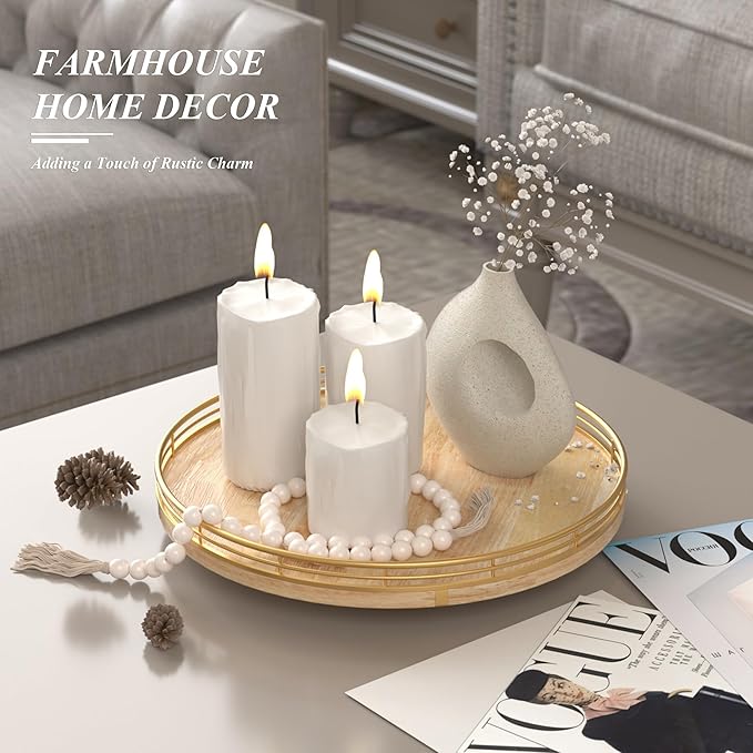 Farmhouse Oak 12" Lazy Susan Turntable Organizer for Cabinet, Round Wooden Lazy Susan Organization and Storage for Dining Table, Pantry, Kitchen, Countertop, Cupboard,Home Decor