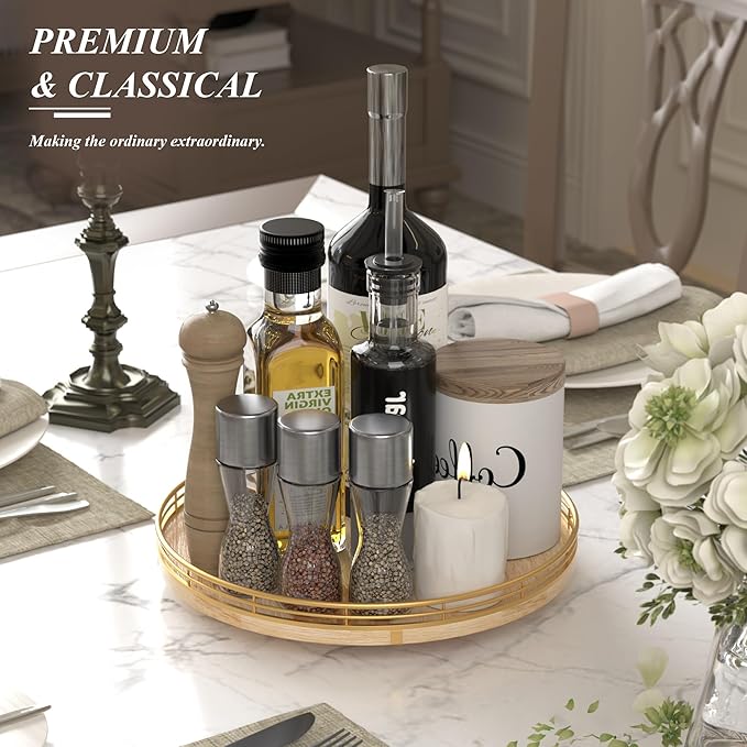 - πππΒ°ππππππππ :The base is made of solid wood, and the spinning mechanism is made of steel ball bearings, which are well-built and allow for 360Β°smooth spinning. This Lazy Susan is very attractive and very easy to use to keep your spices, condiments, and more organized and accessible.
