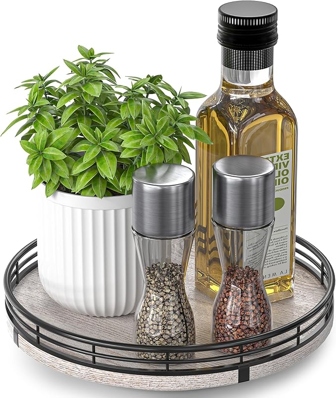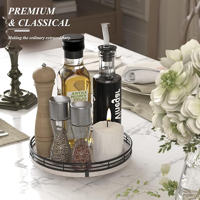 - πππΒ°ππππππππ: The base is made of solid wood, and the spinning mechanism is made of steel ball bearings, which are well-built and allow for 360Β°smooth spinning. This whitewashed Lazy Susan organizer is very attractive and very easy to use to keep your spices, condiments, and more organized and accessible.