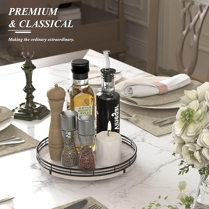 - πππΒ°ππππππππ: The base is made of solid wood, and the spinning mechanism is made of steel ball bearings, which are well-built and allow for 360Β°smooth spinning. This whitewashed Lazy Susan is very attractive and very easy to use to keep your spices, condiments, and more organized and accessible.