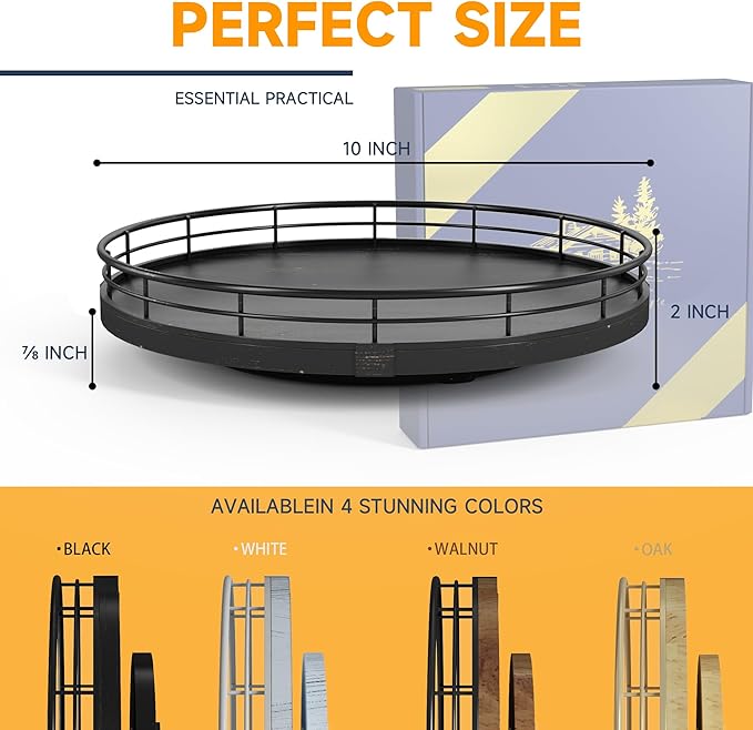 - ππππππ ππππππ:The base is large enough to hold a lot and heavy objects and successfully rotate. It is made of lovely oak wood that is strong with a sturdy metal rack to secure the items on the turntable. The turntable smoothly revolves all around making the items an easy reach. There is also included anti-slip pads on the bottom of the Lazy Susan, for extra surface protection.