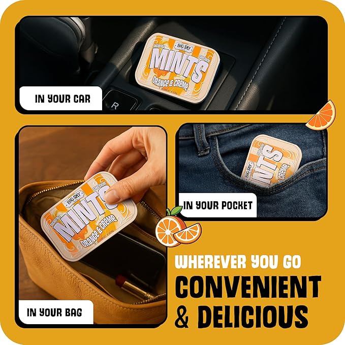 Big Sky Sugar Free Mints Orange & Cream | Sugarfree, No Artificial Colors or Flavors | Kosher Certified, Vegan, Gluten Free | Aspartame & Xylitol Free | 50 Count Tin (Pack of 6)