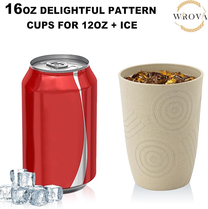 - 【Wheat Straw Material】Elevate your dining experience with our 16oz wheat straw water cups. Made with 100% BPA-free, non-toxic and lead-free materials, they're alternative to plastic tumbler. Say goodbye to harmful chemicals and hello to healthy, strong, and beautifully-designed tableware for your family.