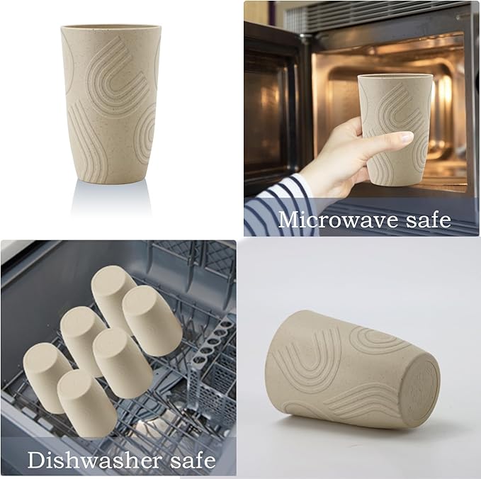 - 【Dishwasher, Freezer and Microwave safe】Upgrade from plastic drinking glasses to our easy-to-clean and microwave-safe wheat straw cups set of 6. With their dishwasher-safe design, cleaning up has never been easier. And thanks to their heat-resistant material, they won't overheat in the microwave.[ Note: The temperature resistance reaches up to 248 degrees Fahrenheit (120℃).]