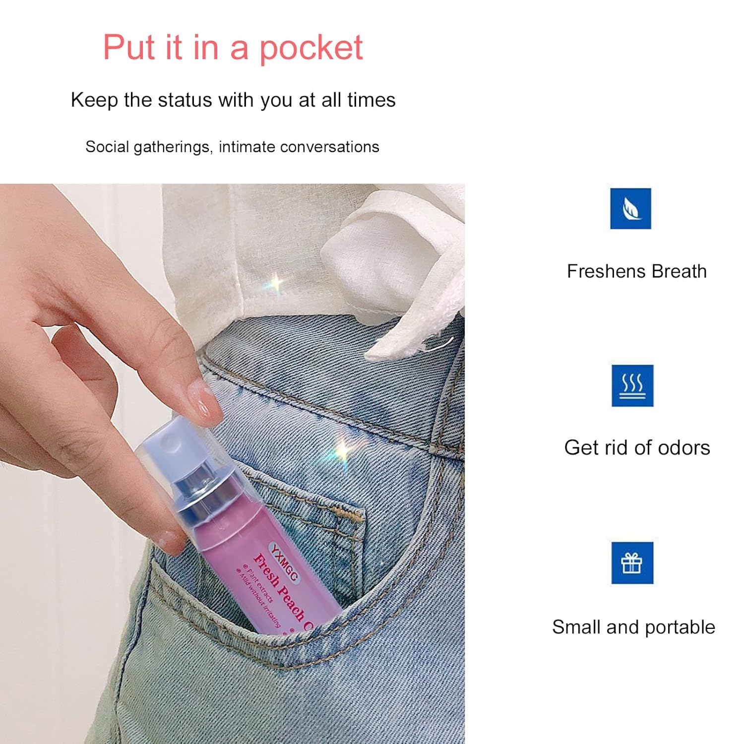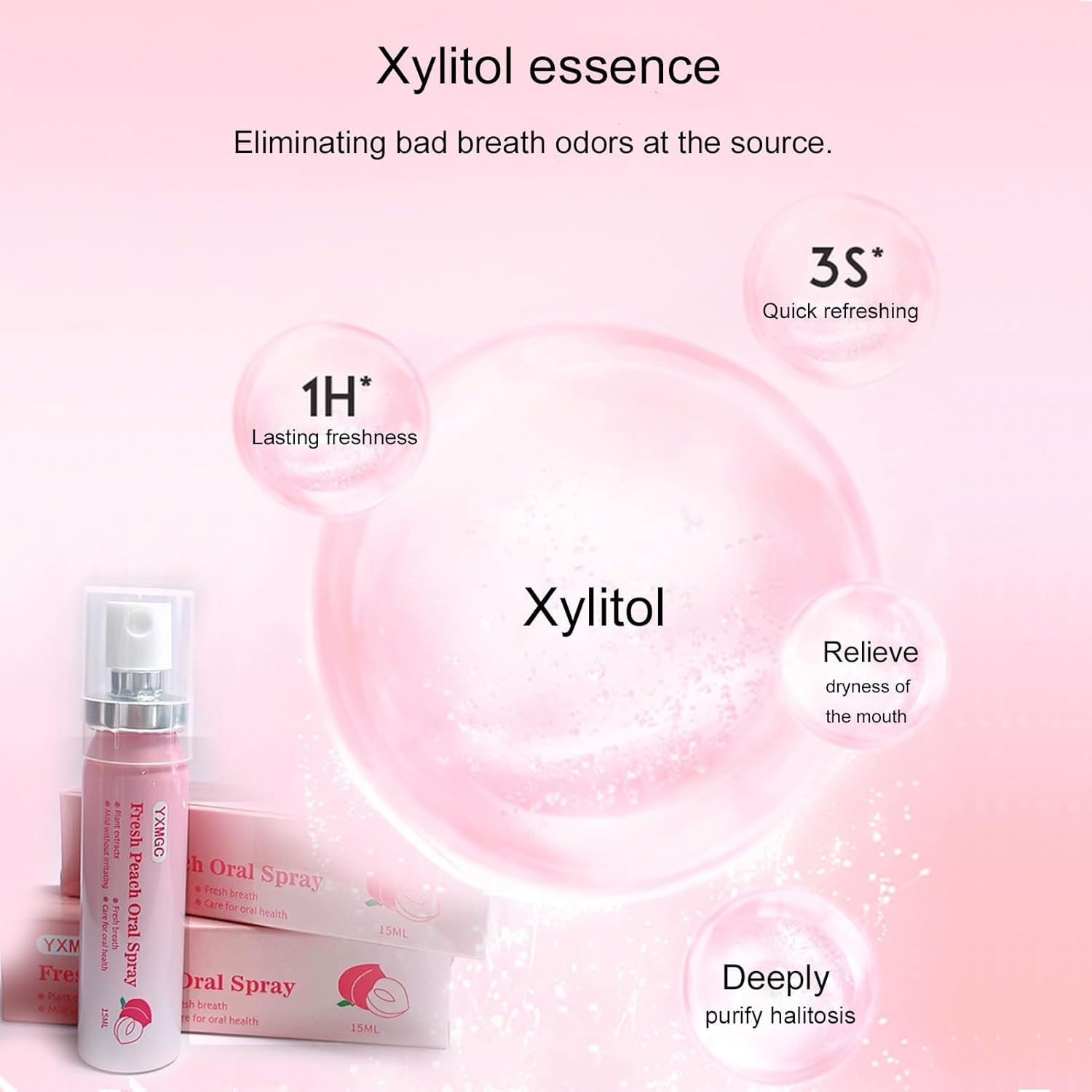 - ✔️ Instant Freshness, Zero Alcohol : Formulated with natural mint extract and xylitol, our mouth spray delivers a refreshing peach-mint burst without alcohol . Safe for sensitive mouths and perfect for daily use!