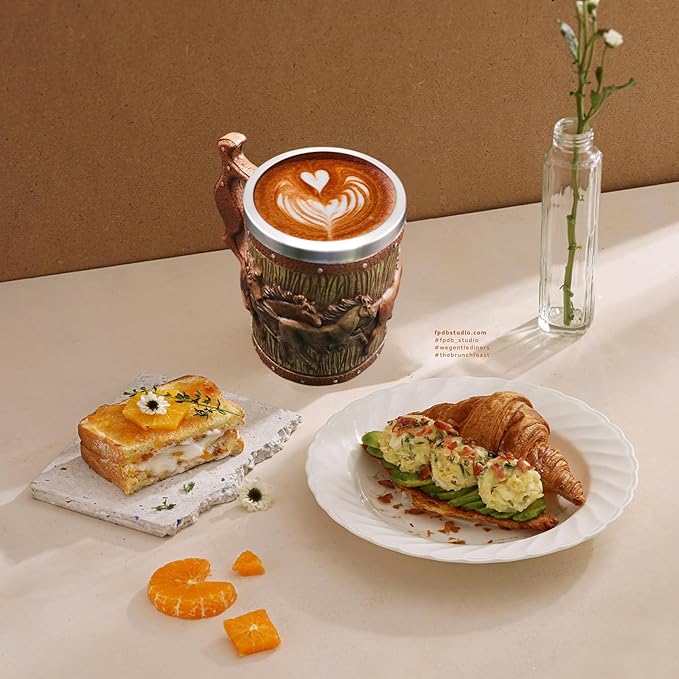 - 【UNIQUE DESIGN】Creative design with 3D Horses, perfect medieval gift, and horse collection. This is a true beer lover's mug!!!! The stainless steel cup inside the wooden casing of the mug will keep the temperature of the beer colder, for a longer period of time during the summer & the temperature of hot coffee or tea in cold winter.