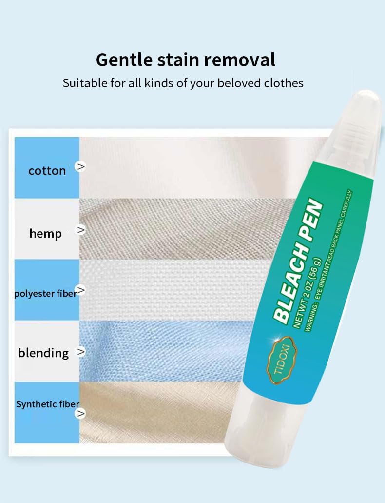 - Tidoxi Bleach Pen -- Stain Removing Pen Bleach for Clothing, Effectively remove all kinds of stains It can be used for food stains, cosmetic stains, beverages (coffee, tea, wine, milk, cola, etc.), ketchup, oil stains, etc.