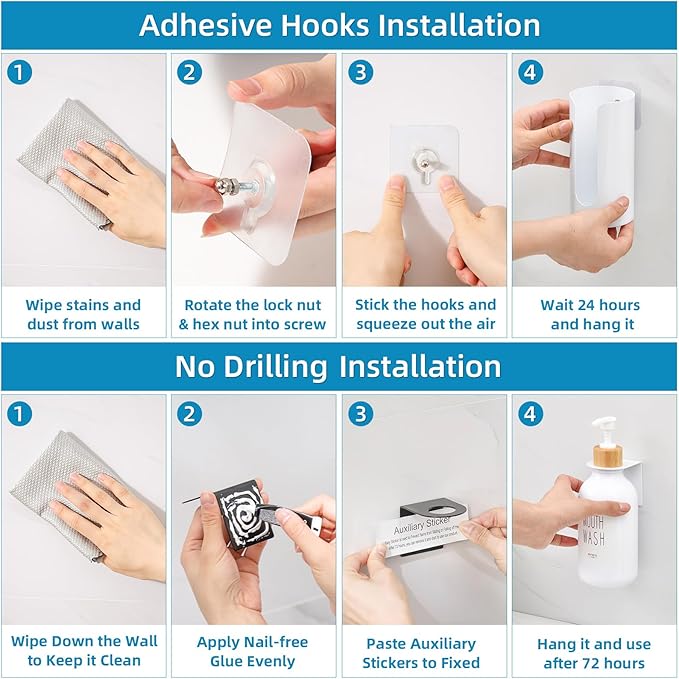 - 【Wall Mounted/Self-standing】You can install the mouthwash dispenser on any smooth surface without worrying about drilling holes or place it on the counter.