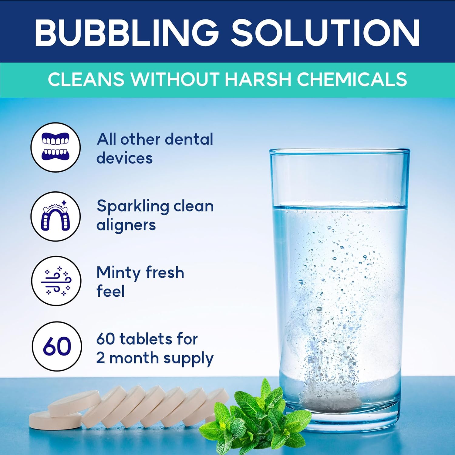 Cleaner Tablets for Difiney Anti Snoring Device: Retainer Cleaner for Invisalign, Night Guard– Deep Denture Cleaning – Odor, Stain & Plaque Remover – 60 Mint Tablets, 2-Month Supply
