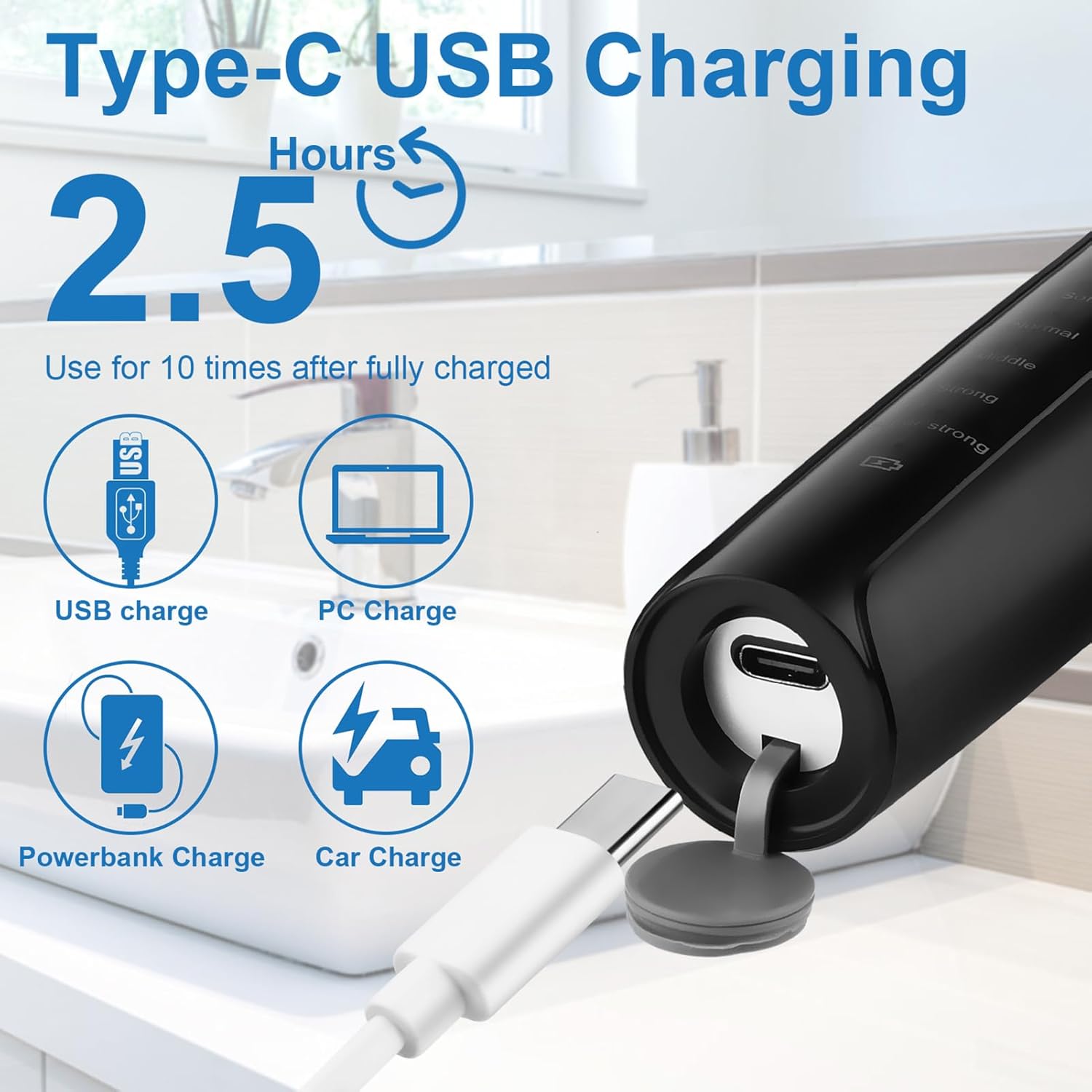 - Rechargeable and Waterproof: The teeth stain remover is rechargable with USB Type-C cable, which can be charged on a power bank or PC. The shell of the tooth polisher is IPX6 waterproof which allows the scaler to be rinsed under running water. (Do not soak in water)