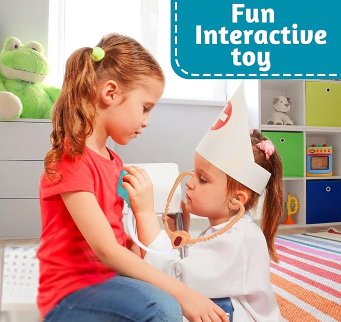 - 【Valuable Toddler Pretend Play Toy】Our kids doctors play set comes with stethoscope toy, syringe, thermometer, eyeglasses, tweezers, scissors, knife clip and so on, totally 29 PCS. Many options for children to explore, they can play doctor with their stuffed animals, dolls and friends. Perfect doctor kit for toddlers 3-5 who like to pretend play and those who dreams of being a doctor or dentist. Best toddler boy girls Christmas gift ideas.