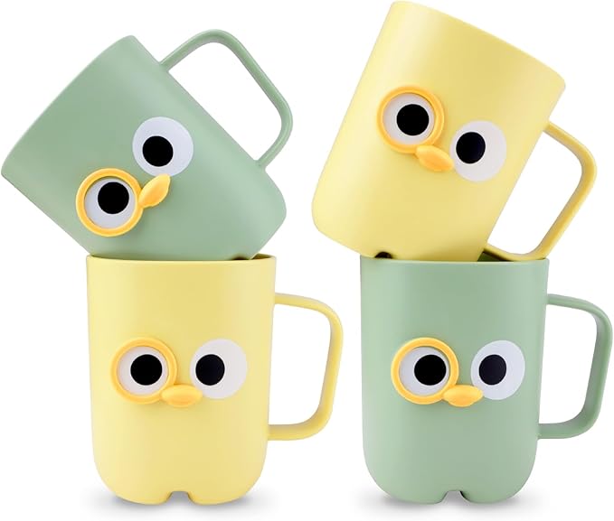 - 【Value Pack】-- You will receive 4 pieces cute cartoon bathroom cups of 2 colors(green, yellow), also the size for 470ml, perfect for household and travel use.