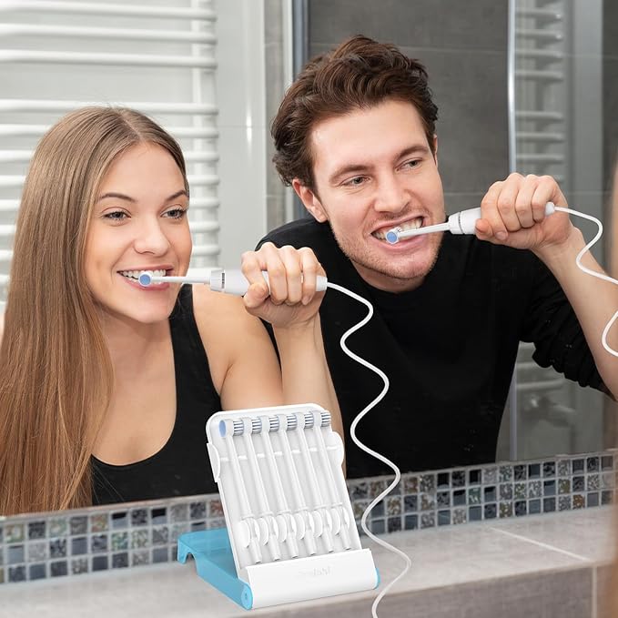 - Storage Case & 6 Brush Head Tips: Hygienic and convenient storage case for up to 6 water flosser tips for waterpik, features an easy-open and hinged flip top.