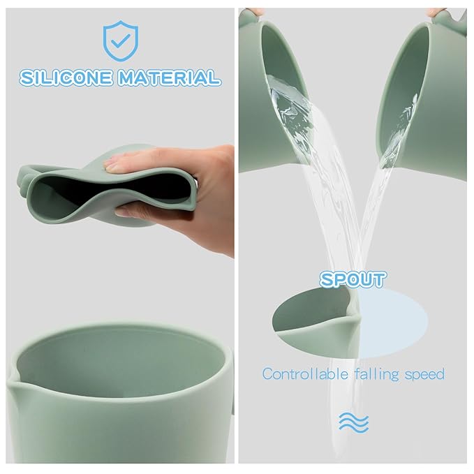 - Soft and Silky Silicone: Crafted from premium food-grade silicone, the Bath Rinse Cup is not only gentle on your baby's delicate skin but also exudes a sense of tranquility with its delightful color. The textured exterior and ergonomic handle ensure a secure and comfortable grip while pouring.