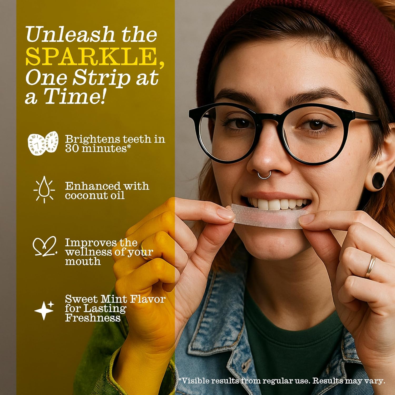 - COCONUT OIL & SLIP-FREE COMFORT: Enriched with natural coconut oil to improve taste. Innovative slip-free strip technology keeps the strips securely in place for a mess-free, comfortable fit.