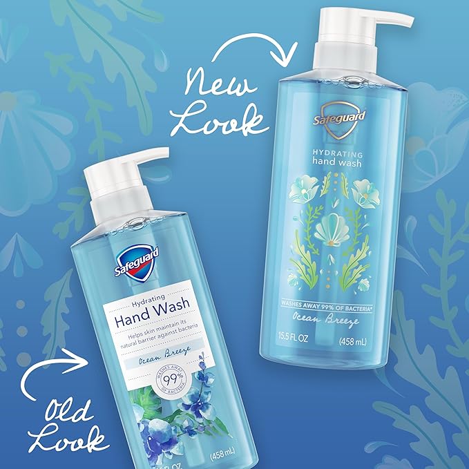 Safeguard Liquid Hand Soap, Micellar Deep Cleansing, Washes Away 99% Bacteria, Made with Natural Moisturizers, Enriched with Skin Conditioners, PH Balanced, Ocean Breeze Scent 15.5 oz (Pack of 4)