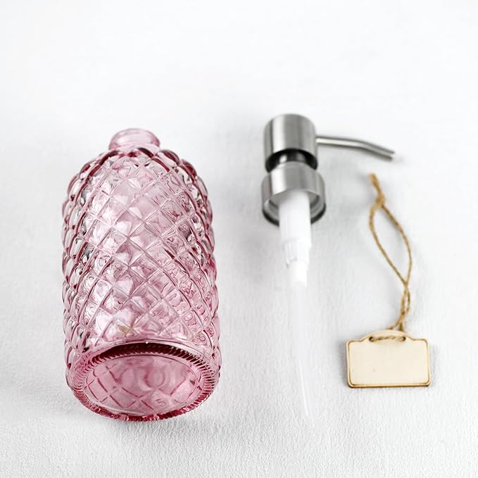 16 oz Soap Dispenser with 304 Rustproof Stainless Steel Pump, Kitchen, Bathroom Refillable Glass Liquid Soap Dispenser for Hand Soap, Soap, Lotion. (Pink-2pack)