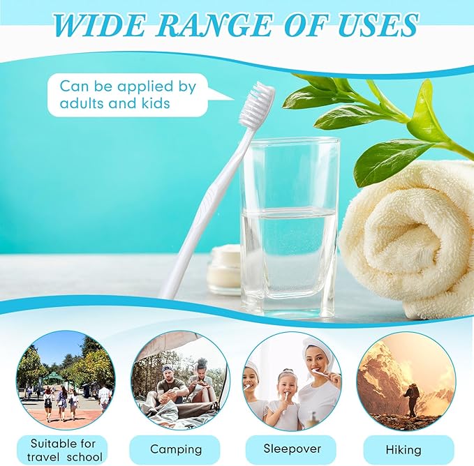 - Widely Applicable: these toothbrushes soft bristles can be applied at travel, camping, hiking, sleepover parties, hotels and restaurants, and are nice donations to welfare homes, nursing rooms, charities, homeless and more