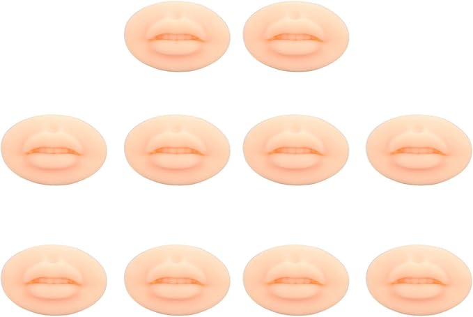 Diydeg 10pcs Practice Lips, Silicone Model Soft and Elastic Silicone Lips Fake Lips with Teeth Shape, Compact Size for Permanent Makeup Training (Light)