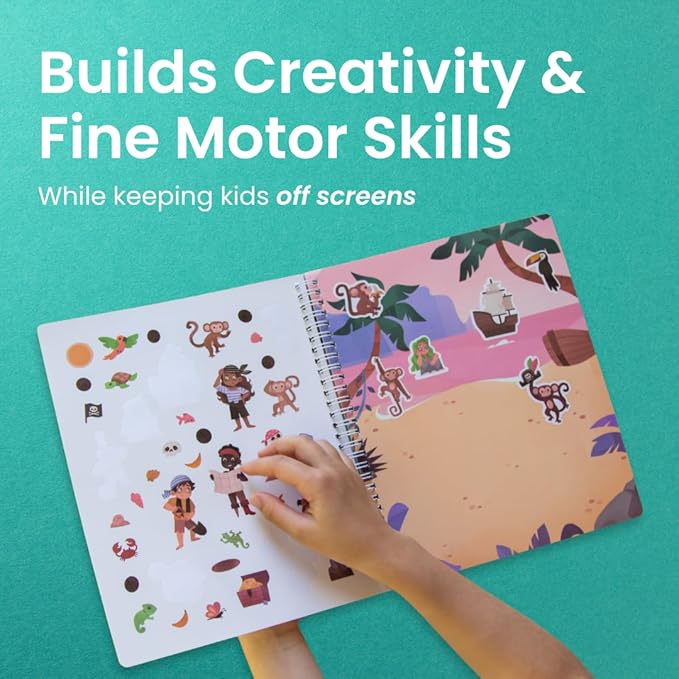 - On the go fun: Keep kids busy while traveling with independent, quiet, screen-free fun. Our lay-flat sticker activity books make the best plane travel essentials for toddlers, create the perfect mess-free crafts for car road trips with little ones, and keep kids entertained at restaurants. Leave the tablet at home and let their imaginations soar on your next family adventure.